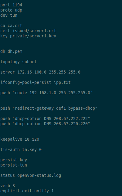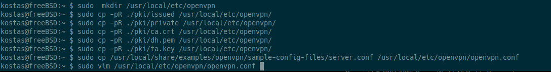 With the following commands, we transfer all the security files (certificates, keys, parameters) that we created with Easy-RSA to the folder where the OpenVPN server needs them to function.