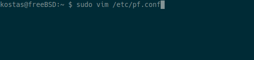 Next we configure pf.conf, Packet Filter (referred to as PF) is the OpenBSD system for filtering TCP/IP traffic and performing NAT. PF is also capable of smoothing and regulating TCP/IP traffic, as well as providing bandwidth control and packet prioritization. Since FreeBSD version 5.3, a version of the OpenBSD PF firewall has been included as an integrated part of the base system.