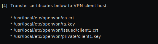 But before we get to the installation, we need to create a *.ovpn file that contains the certificates and keys we created, where can we find them: