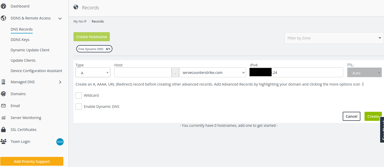 Port forwarding is a process that allows a computer or device within your network to "accept" connections from the external network (e.g. the Internet) and forward them to the appropriate system. DDNS (Dynamic Domain Name System) on the other hand is a service that allows you to have a fixed domain name, even if your network's IP address changes constantly. In our case, because we have both a dynamic IP and are behind NAT, we will use both to be able to access our server via the Internet.